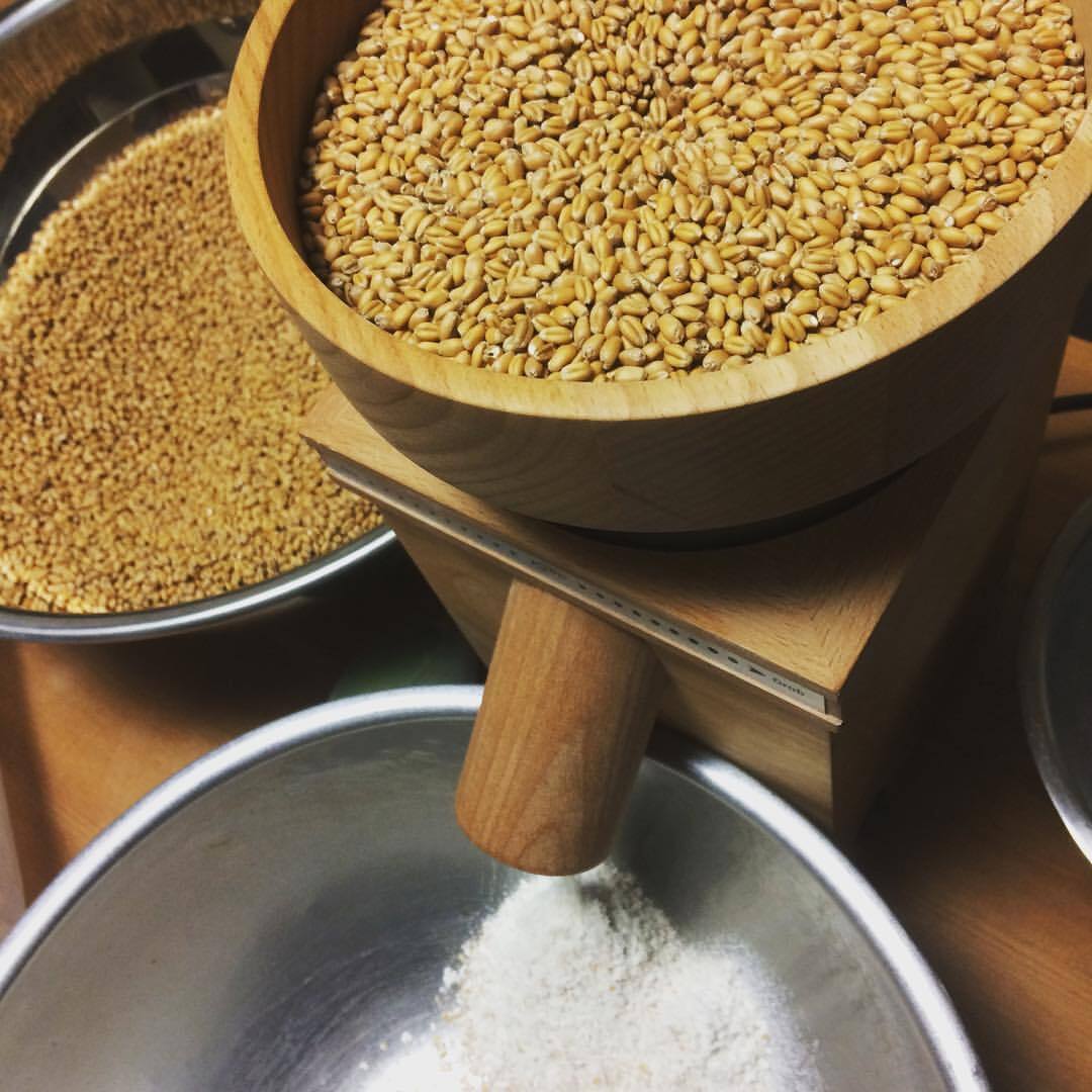 小麦屋の工房で石臼挽きをする「あらびきさん」は、小麦ブラン(外皮)を残していますので、小麦の味と香りがより高いです。