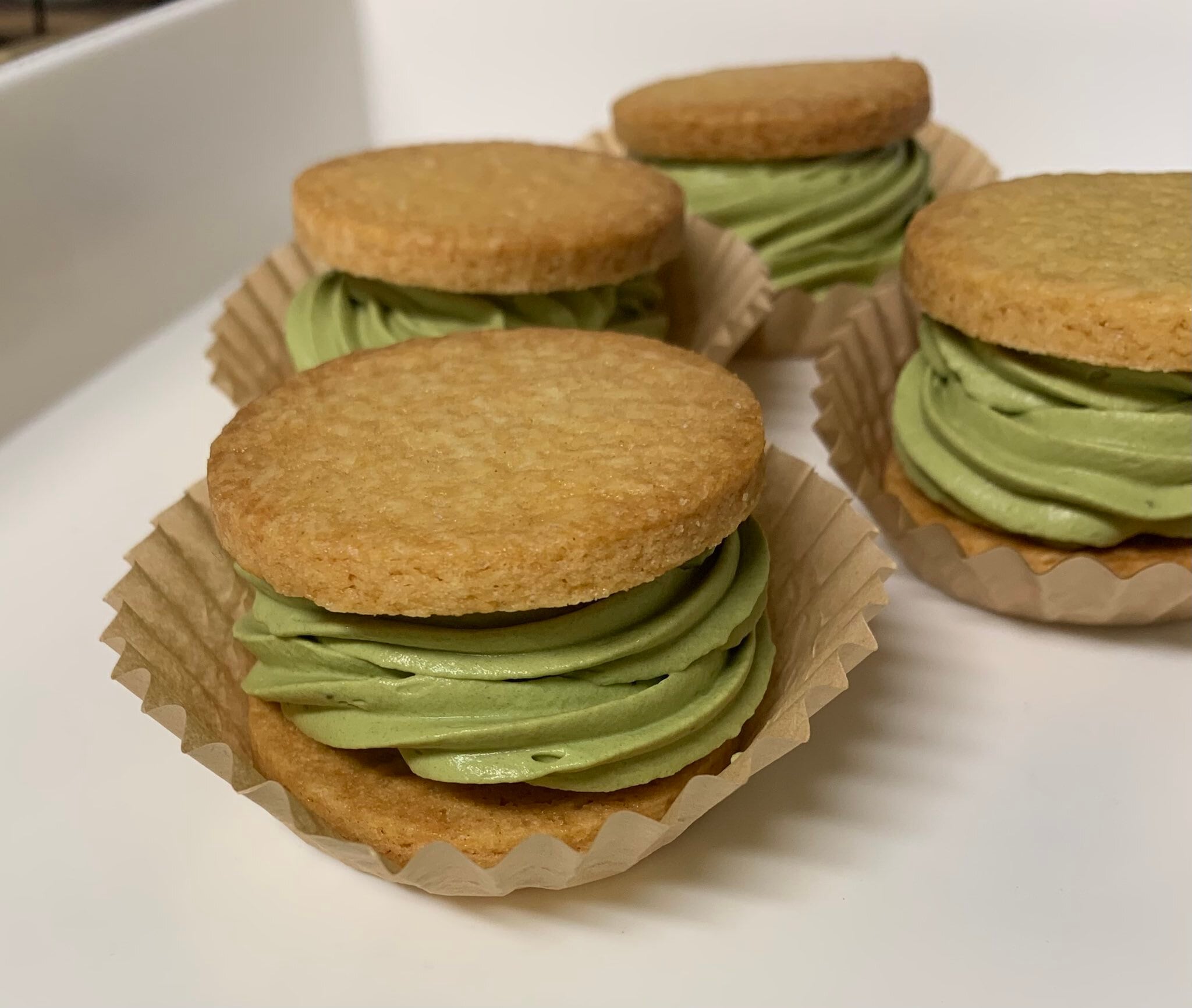農薬や化学肥料を使わずに栽培した阿波小麦と高千穂牧場のバター、有機砂糖で作ったクッキー生地で、マスカルポーネチーズをベースにしたクリームをサンドしました。